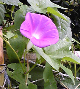 早起きした庭に一輪だけ、かわいい花が咲いていた。 たぶん、アサガオかな。 ガーデン・テーブルの横、ゴーヤのとなりである。 そんなところにアサガオを植えた覚えはないのに。 たぶん、何処かから種が飛んできて自然に育ったんだろうなぁ。 こんなに雨も降らず、毎日毎日暑い日が続いていると言うのに ちゃんと、花を咲かせて次の世代のための準備をしているんだ。 些細な事で、 自分の子供を平気で死に追いやってしまうような事件が多い 人間と違って、 うつくしい花は、美しくそして、 たくましく生きているのかもしれない。 朝から、気持ちのいい日だ。 こんな時は、コーヒーを入れて飲もう。 散歩の後のコーヒーは格別だから |